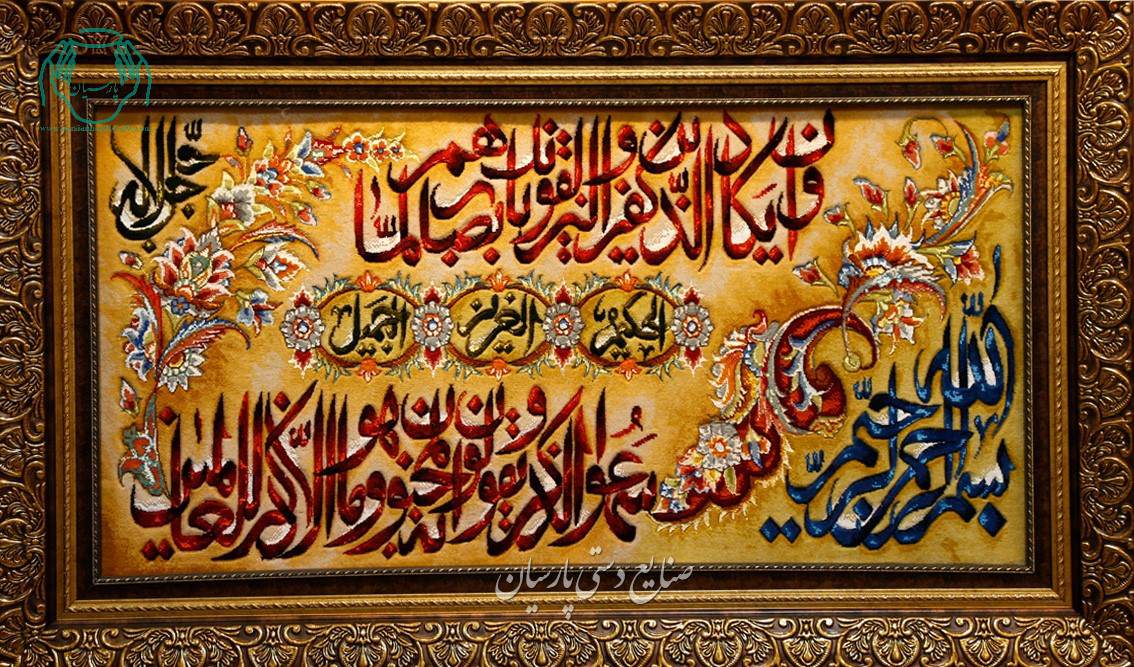 مشخصات تابلو فرش دستبافت چله ابریشم ان یکاد اسما الله جل جلاله