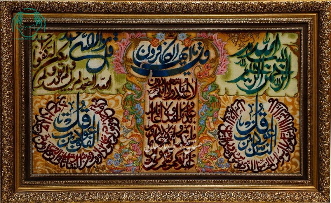 • تابلو فرش دستبافت چله ابریشم سوره کافرون