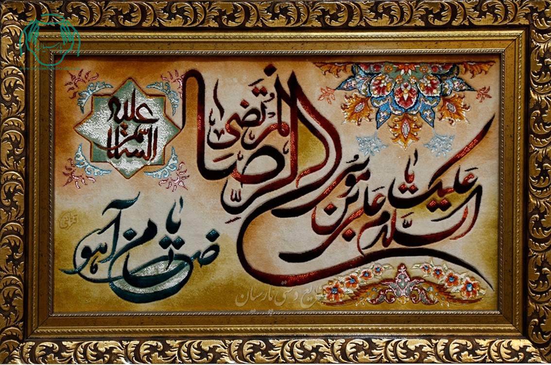 مشخصات تابلو فرش دستبافت چله ابریشم برجسته علی ابن موسی الرضاضامن آهو
