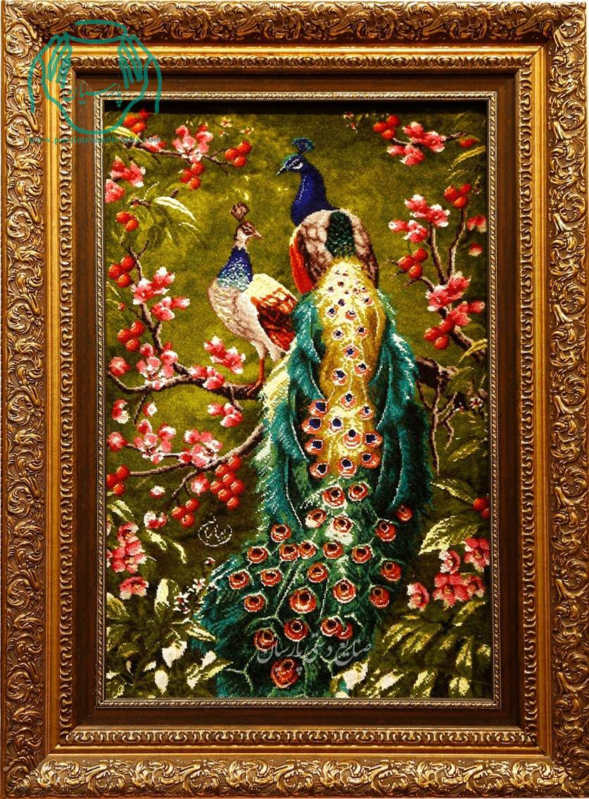 مشخصات تابلو فرش دستبافت چله ابریشم دو طاووس