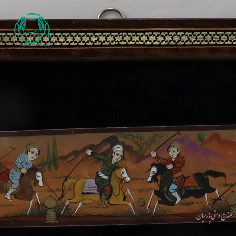 تابلو نقاشی روی استخوان طرح چوگان و قاب خاتم هفت شمسه
