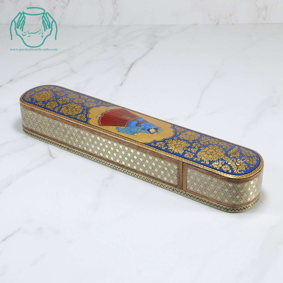 مشخصات جامضرابی خاتم و نقاشی تشعیر اعلی زمینه آبی