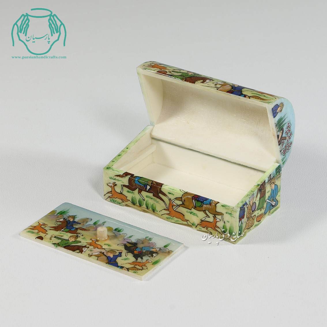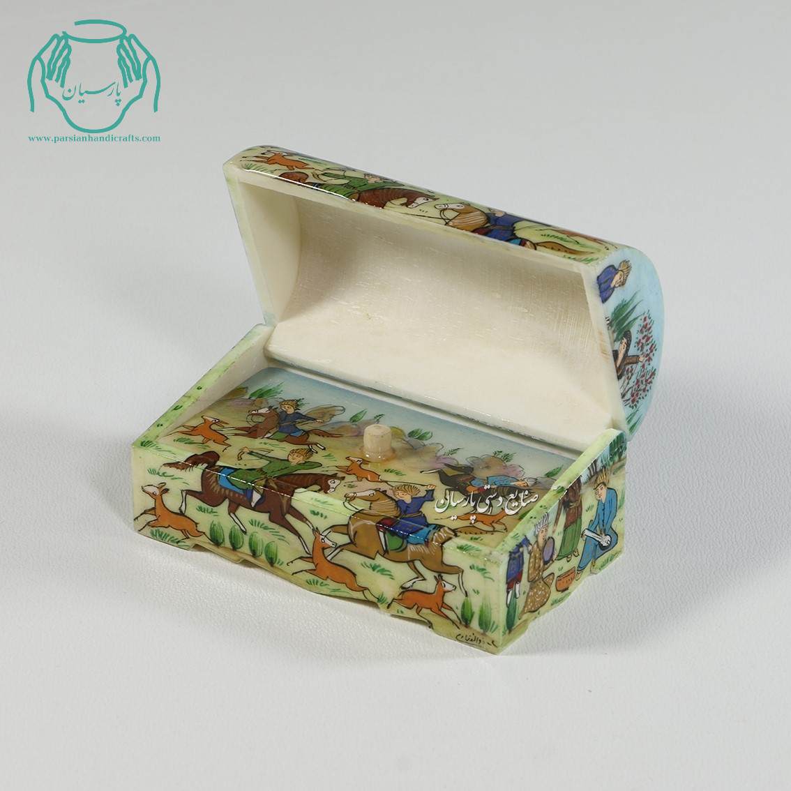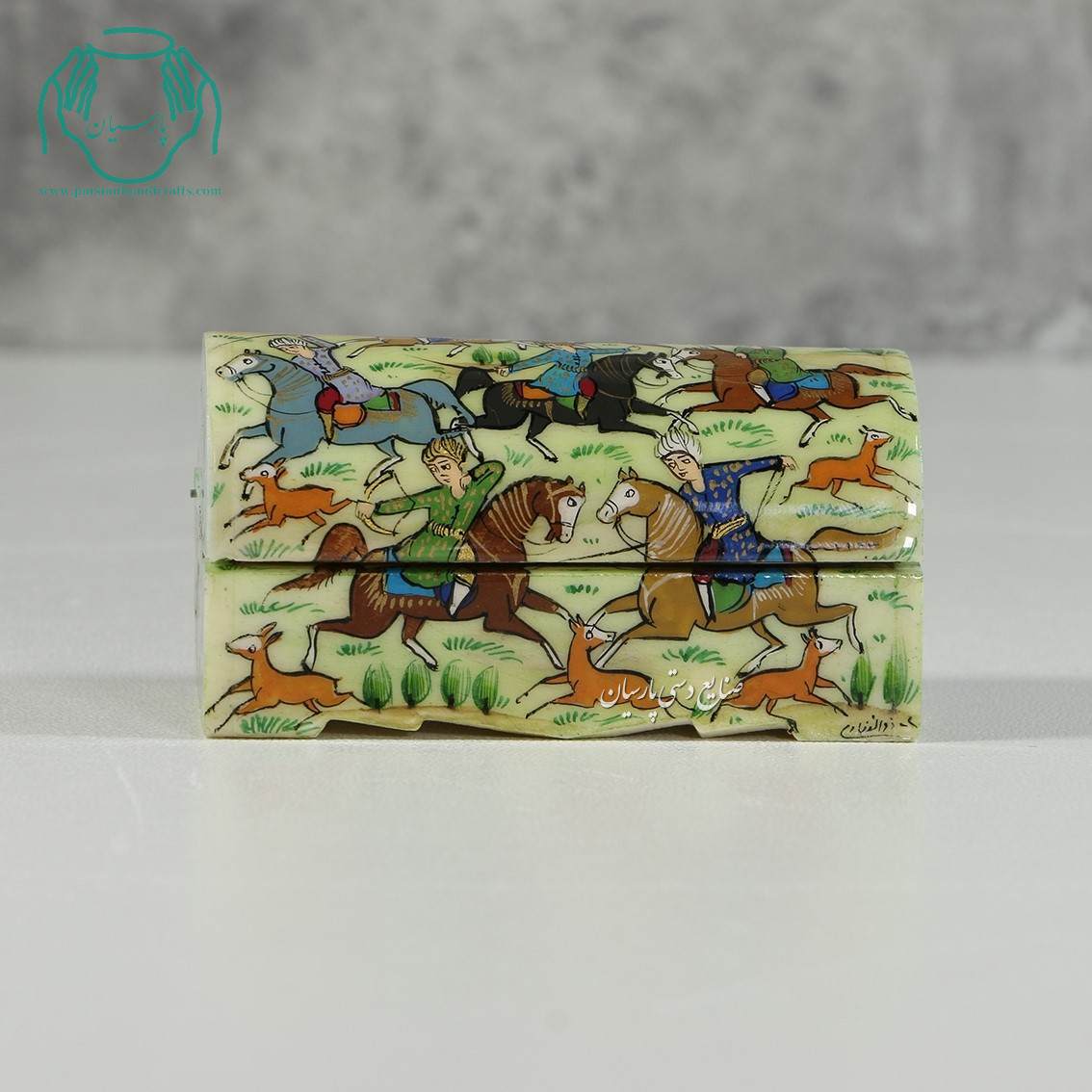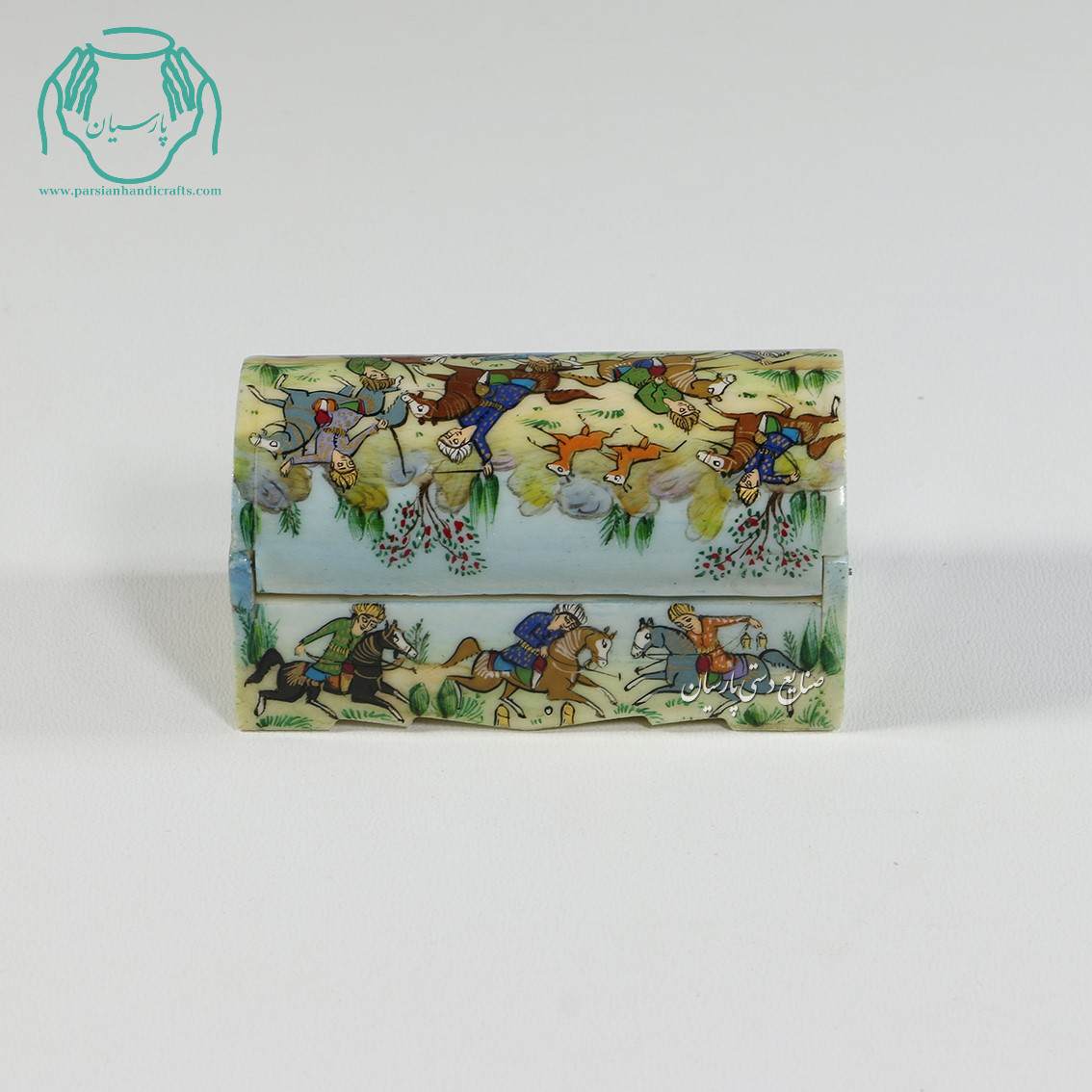 مشخصات جعبه جواهرات صندوقی استخوانی نقاشی چوگان و ایلیات