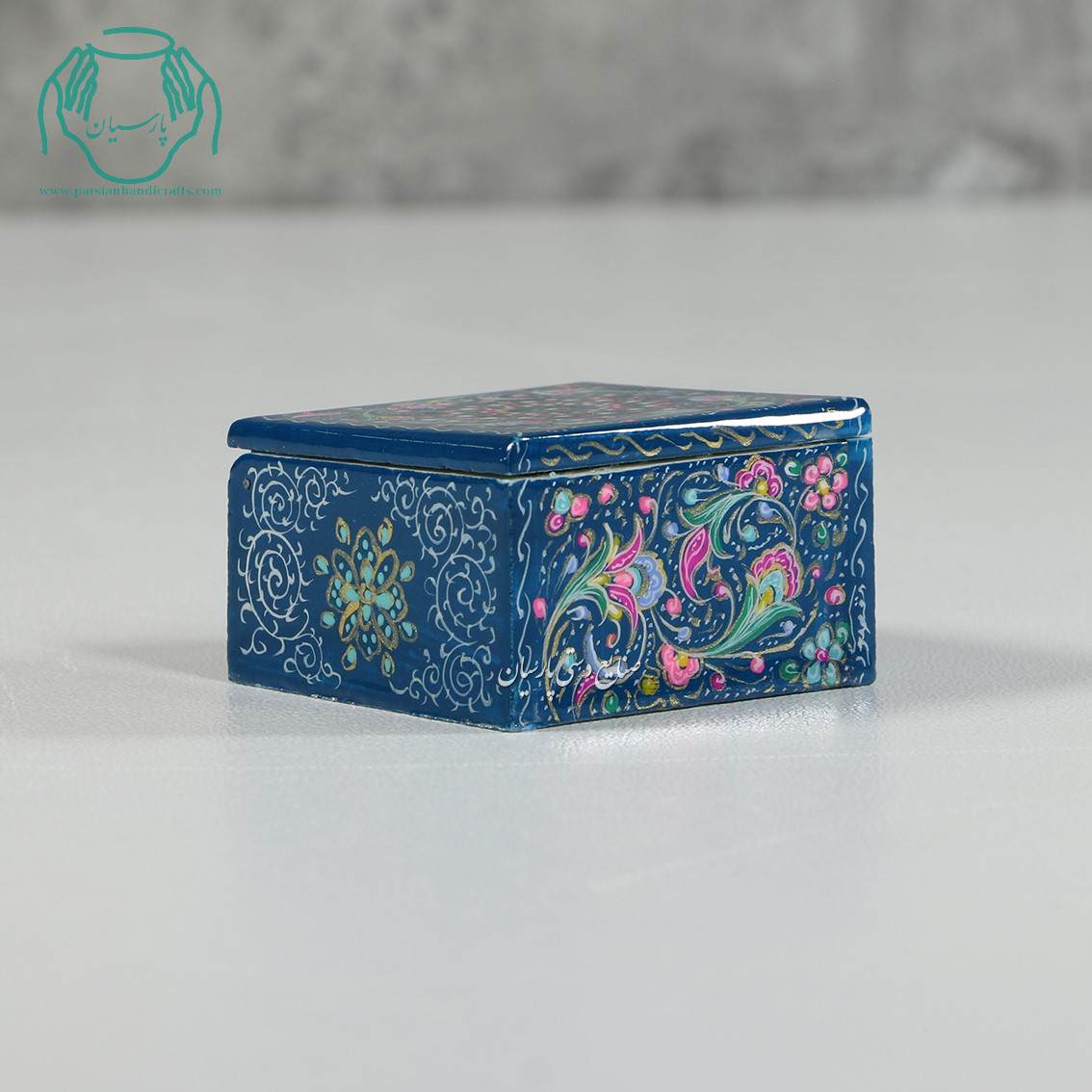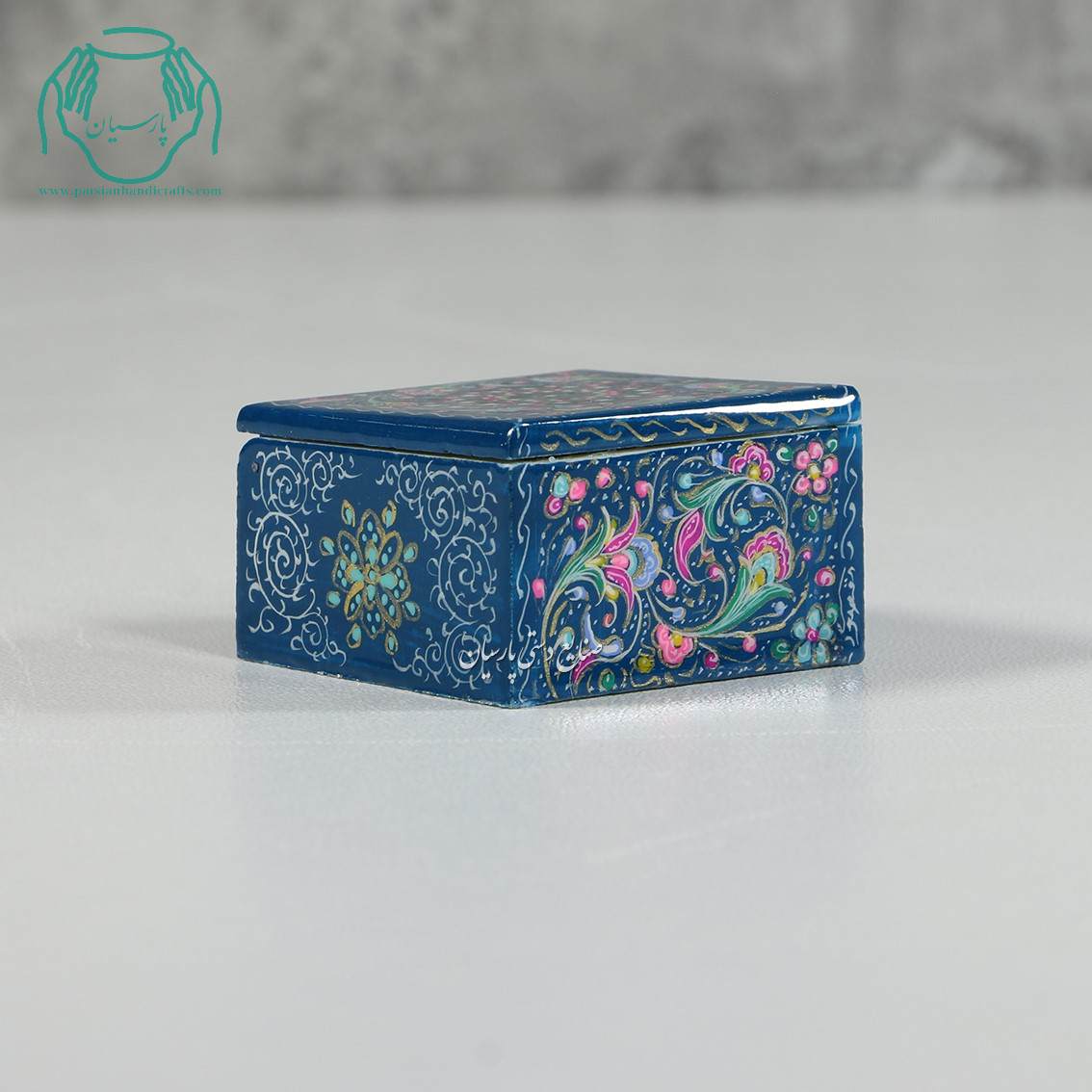 مشخصات جعبه کبریتی جواهرات کوچک استخوانی نقاشی گل زمینه آبی
