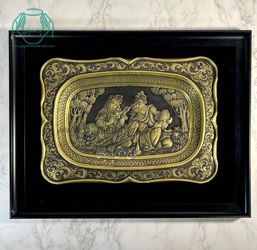 مشخصات سینی قلمزنی دیوارکوب برنجی طرح گل و مرغ و لیلی مجنون
