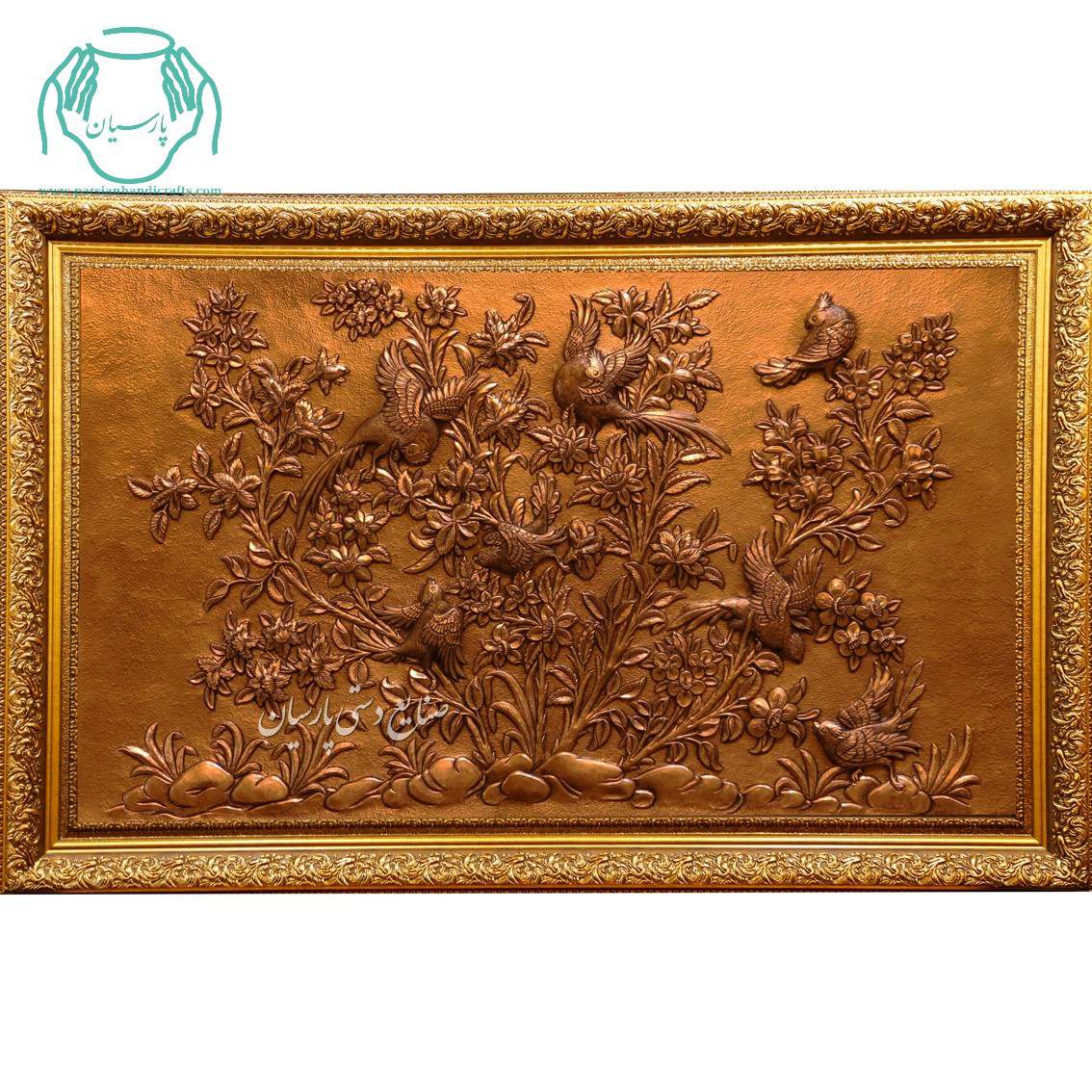 تابلو قلمزنی طرح گل و مرغ پارسیان