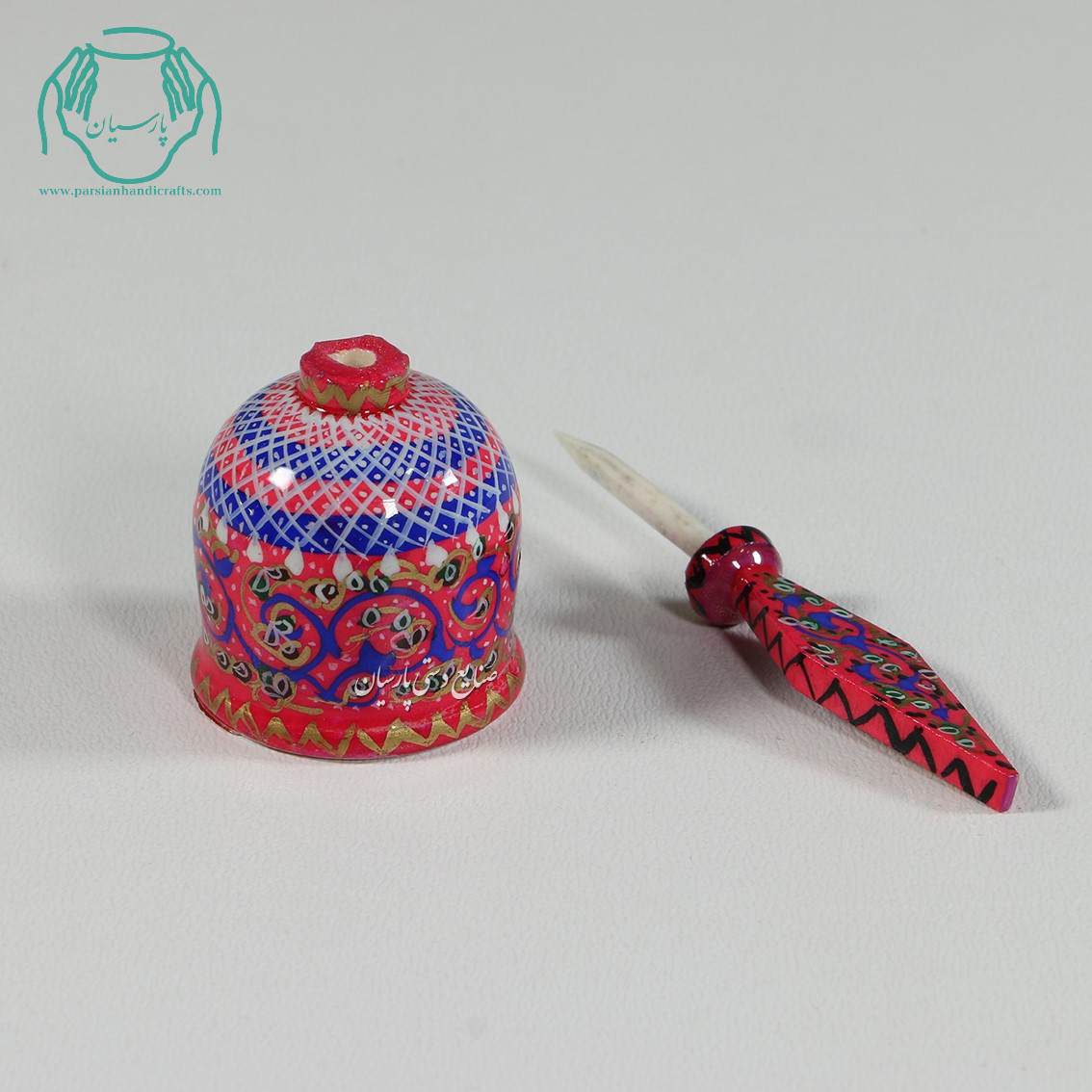 مشخصات سرمه دان استخوانی تخم مرغی نقاشی تذهیب رنگ صورتی