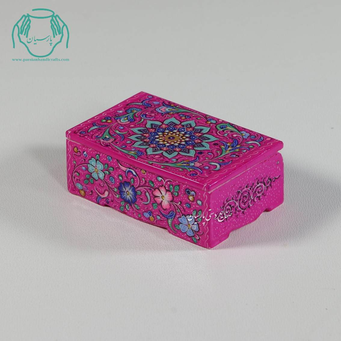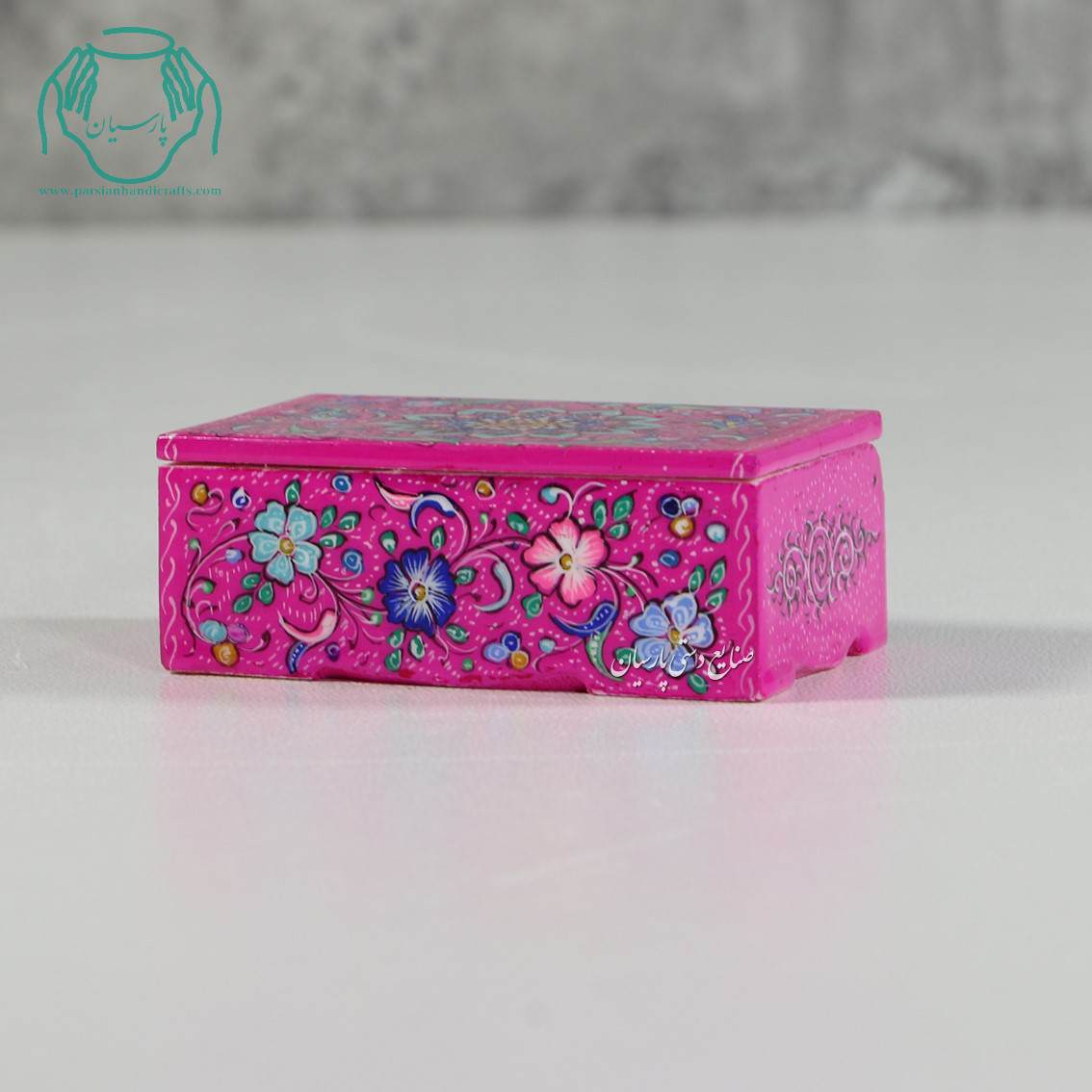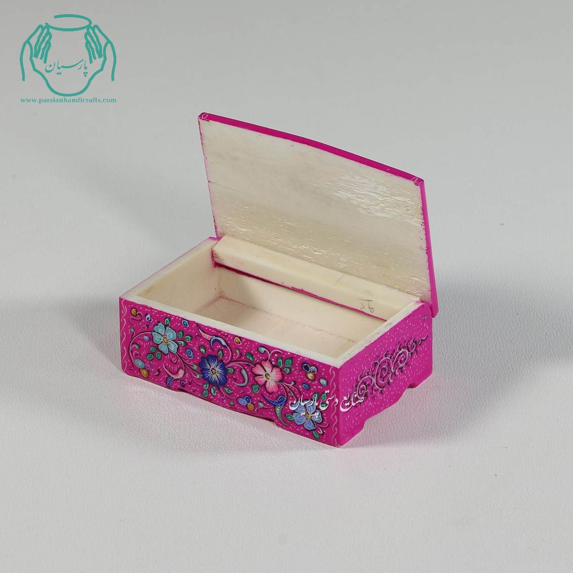 مشخصات جعبه کبریتی جواهرات استخوانی نقاشی گل زمینه صورتی