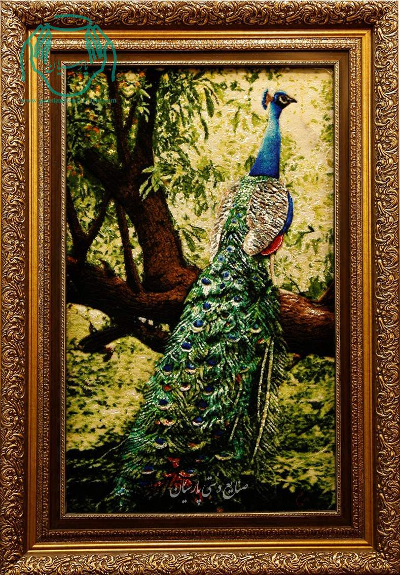 مشخصات تابلو فرش دستبافت چله ابریشم طاووس تکی